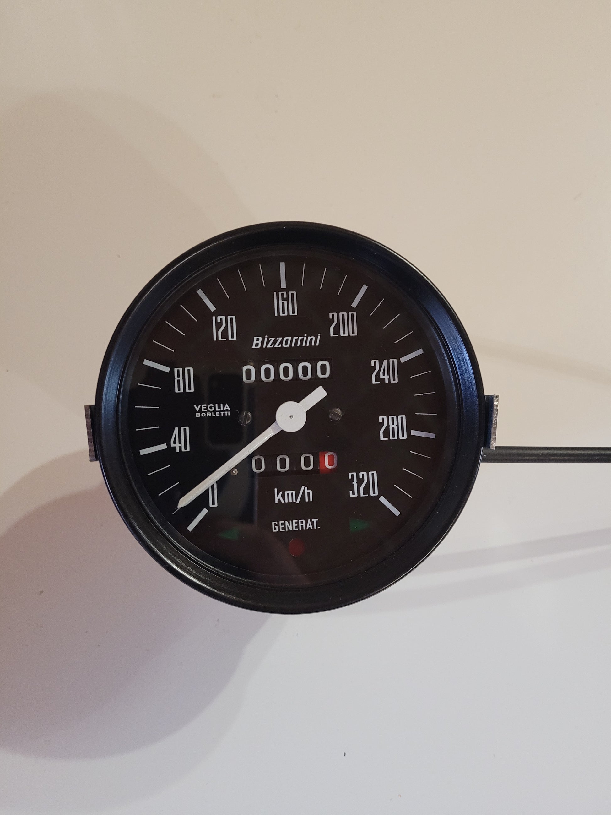 Bizzarrini 5300 GT Speedometer with original Veglia Borletti movement, professionally refurbished. This working gauge ensures precision and reliability, making it an essential piece for collectors and enthusiasts restoring a classic Bizzarrini 5300.