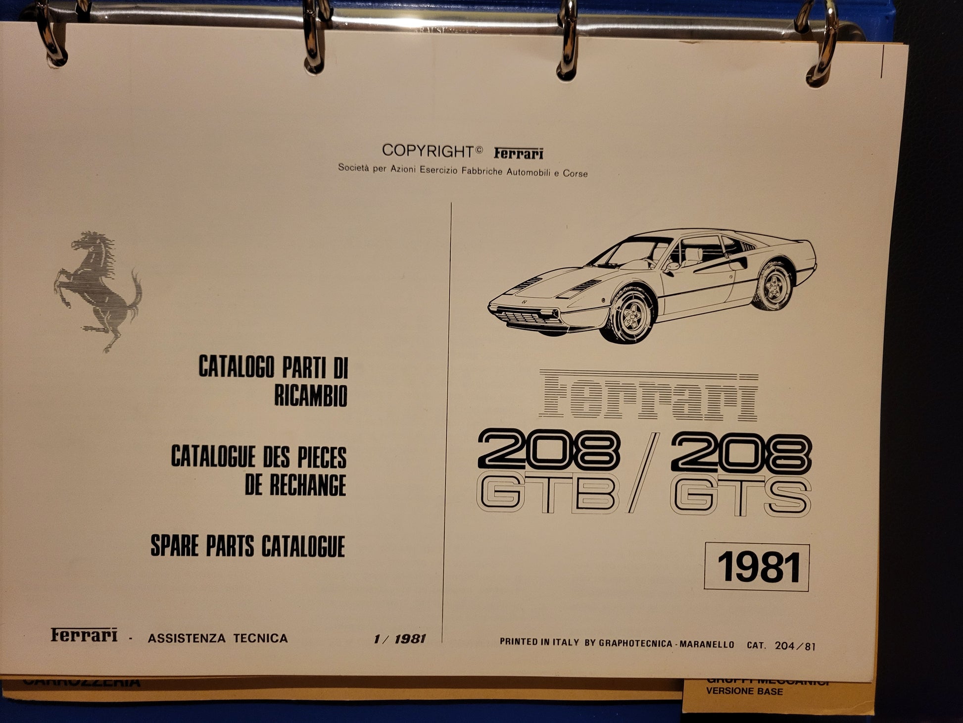 Ferrari 208 GTB GTS Spare Parts Catalog 1981 excellent condition