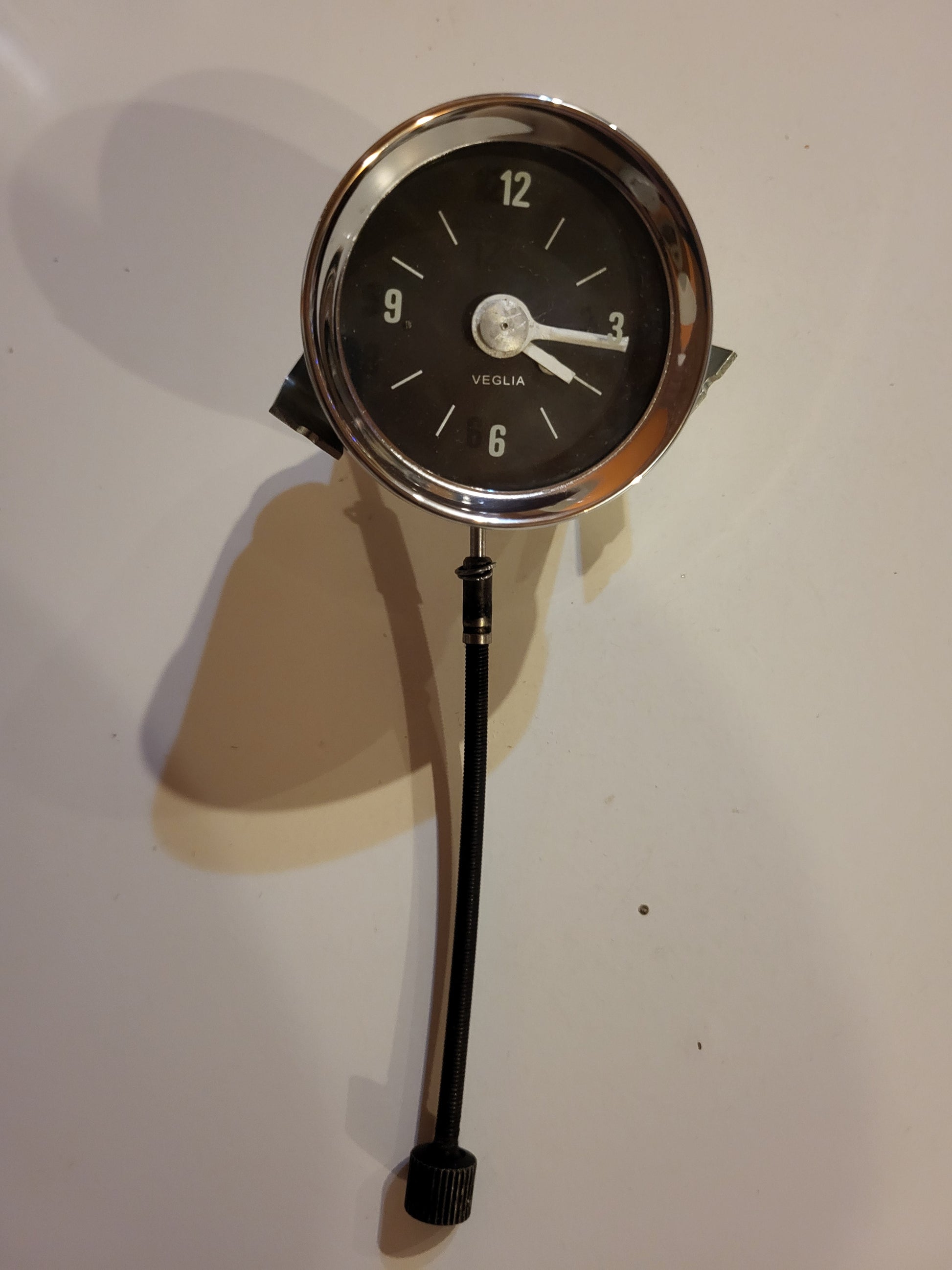 Ferrari 250 SWB Veglia Borletti clock gauge, professionally refurbished and fully functional. Features the original Veglia Borletti movement for maximum accuracy and reliability. Ideal for collectors and enthusiasts completing period-correct Ferrari restorations or high-quality project cars.