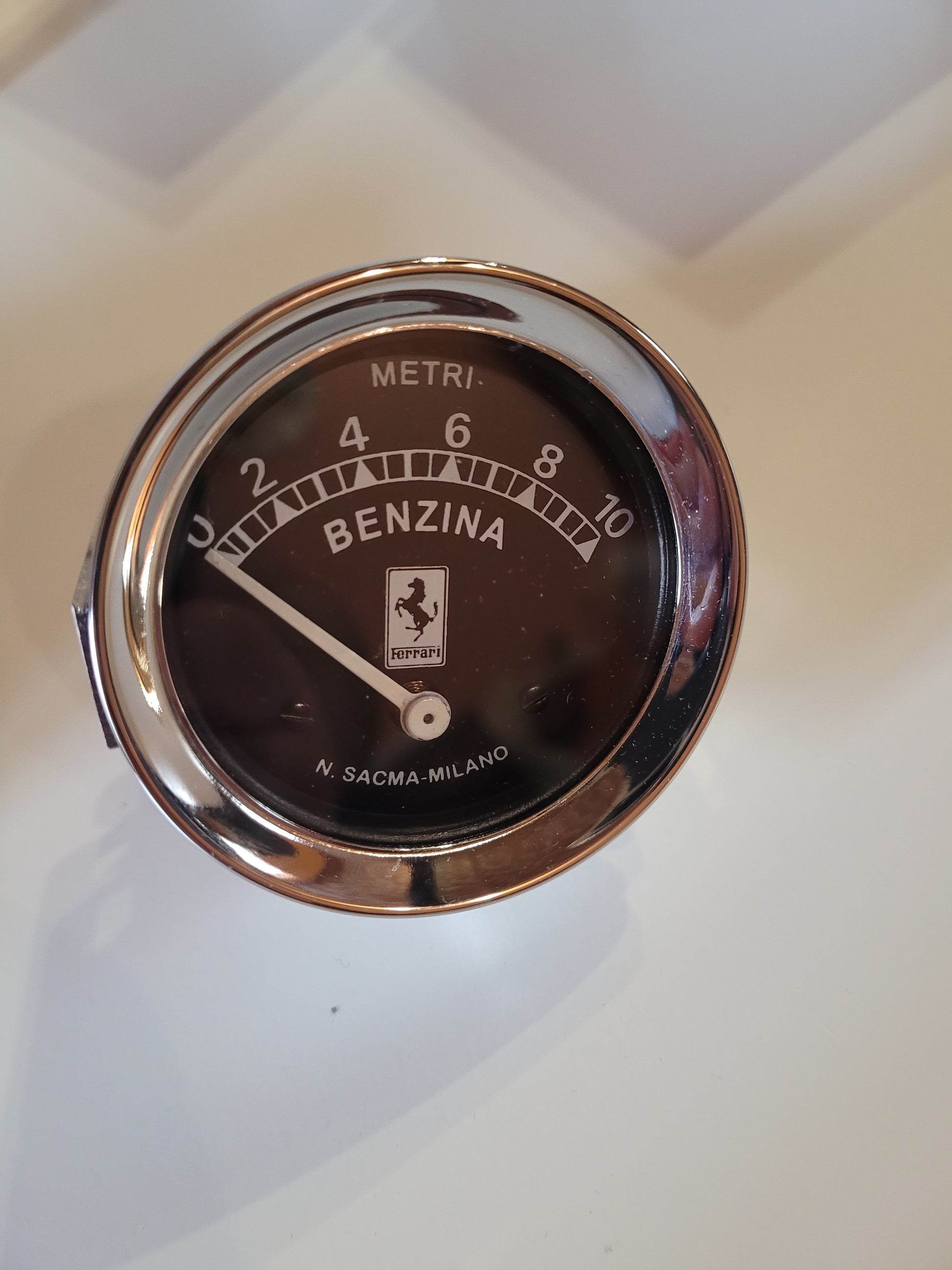 Ferrari 250 TR Sacma Milano fuel pressure gauge, professionally refurbished and fully functional. Features the original Sacma Milano movement, ensuring accuracy and reliability. Essential for collectors and enthusiasts working on accurate, period-correct Ferrari restorations or project cars.