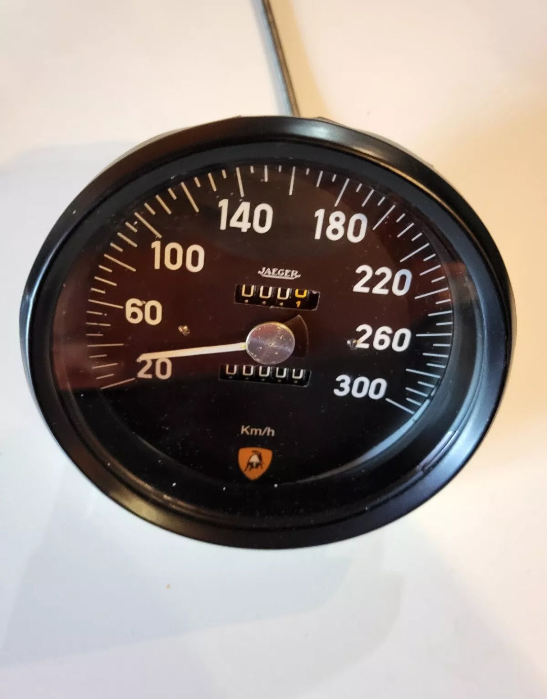 Lamborghini Espada Jaeger Speedometer, professionally refurbished and fully functional. Features the original Jaeger movement, ensuring precision and authenticity. Perfect for collectors and enthusiasts working on accurate, period-correct Lamborghini Espada restorations or projects.