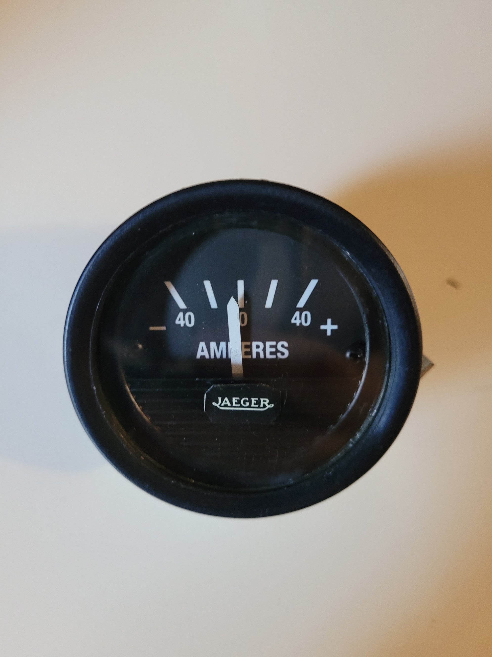 Lamborghini Miura Jaeger Ampere gauge, professionally refurbished and fully functional. Features the original Jaeger movement, ensuring accuracy and authenticity. Perfect for collectors and enthusiasts completing a period-correct restoration or project car.